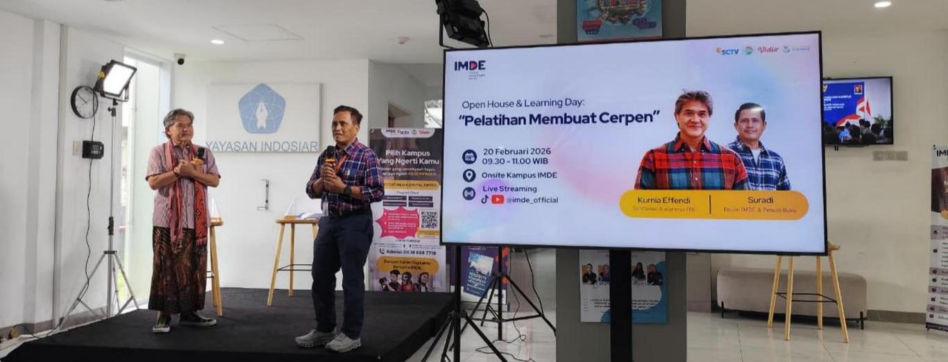 Karena tidak mudah bagi dosen dan tendik untuk menulis cerpen, maka kampus memfasilitasi dengan memberikan pelatihan menulis cerpen dengan mengundang sastrawan-cerpenis terkemuka, Kurnia Effendi. Acara pelatihan ini dilaksanakan secara onsite dan live streaming di Tiktok dan kanal Youtube di kampus IMDE, Jakarta, Jumat (20/02/2026).